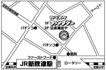 (カラオケファンタジー シンアキツエキマエテン)住所 東京都東村山市秋津町5-12-11BIGビル1階 備考 個室:15部屋