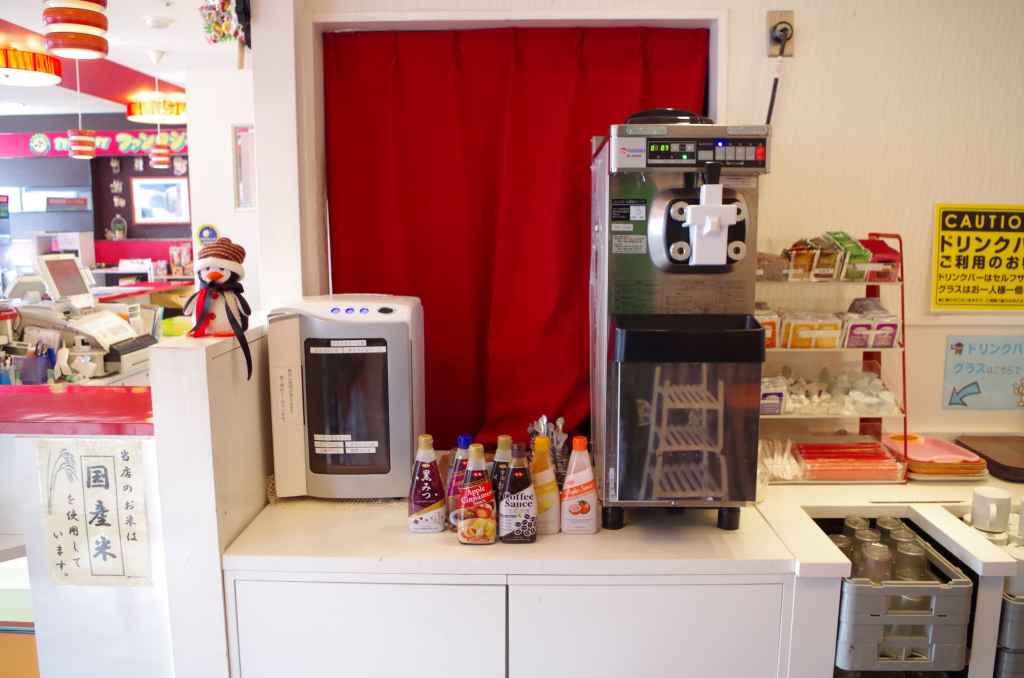 ドリンクバーにはソフトクリームとお味噌汁のサーバーがあり大人気!