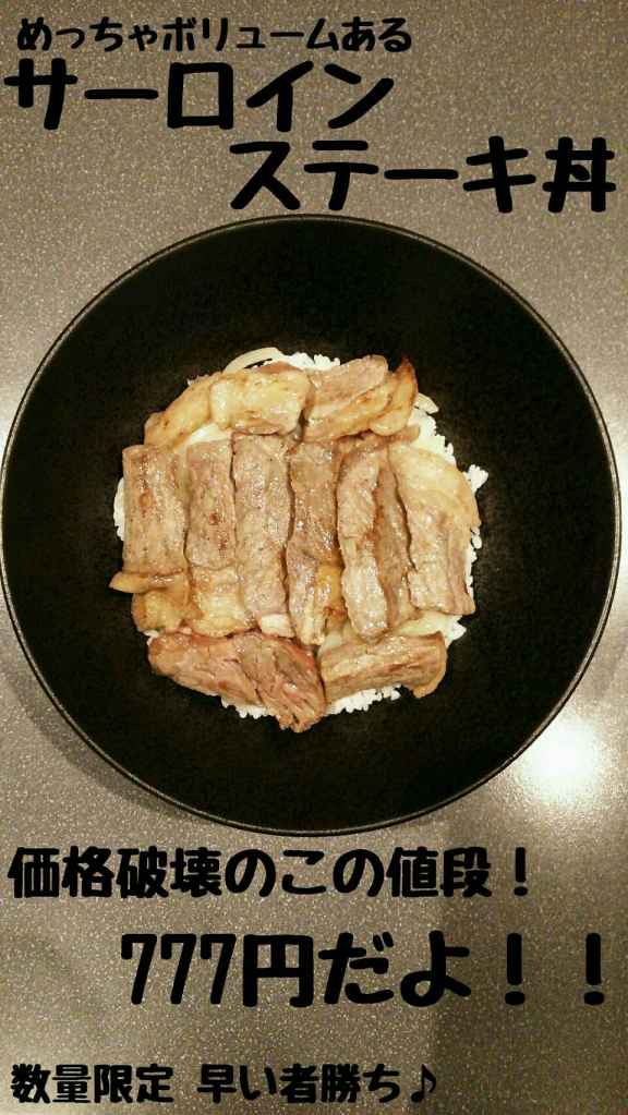 サーロインステーキ丼 ¥777(税込)動画で紹介!カラオケファンタジーとうきょうスカイツリー駅前店