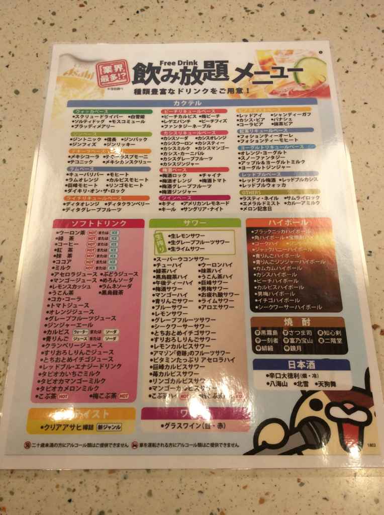 充実なドリンクメニューです