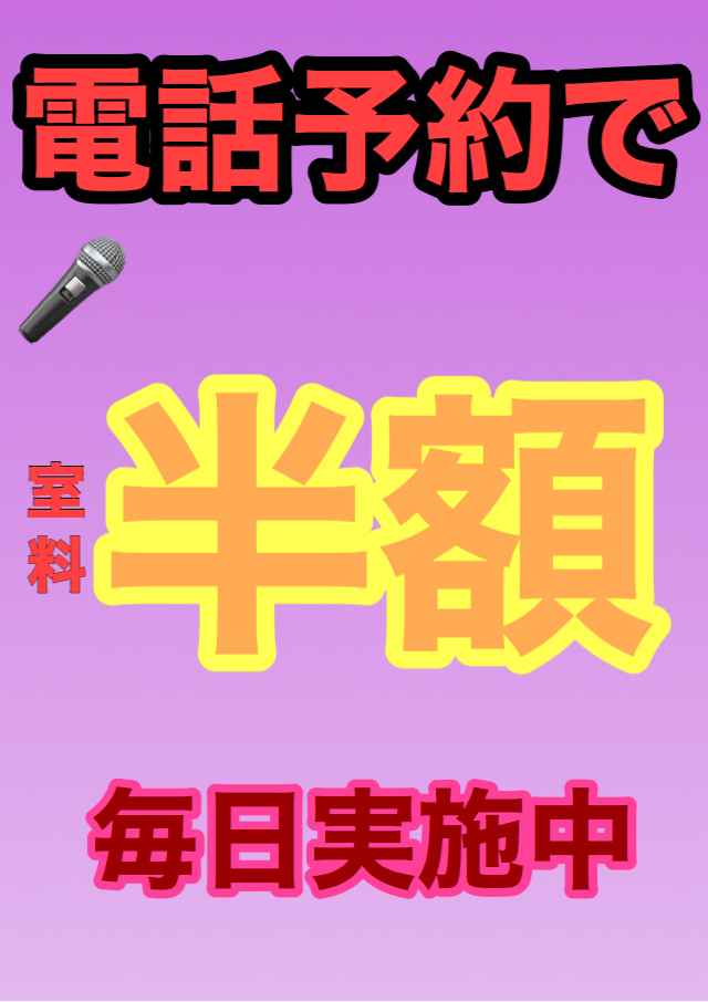 電話予約で室料半額実施中