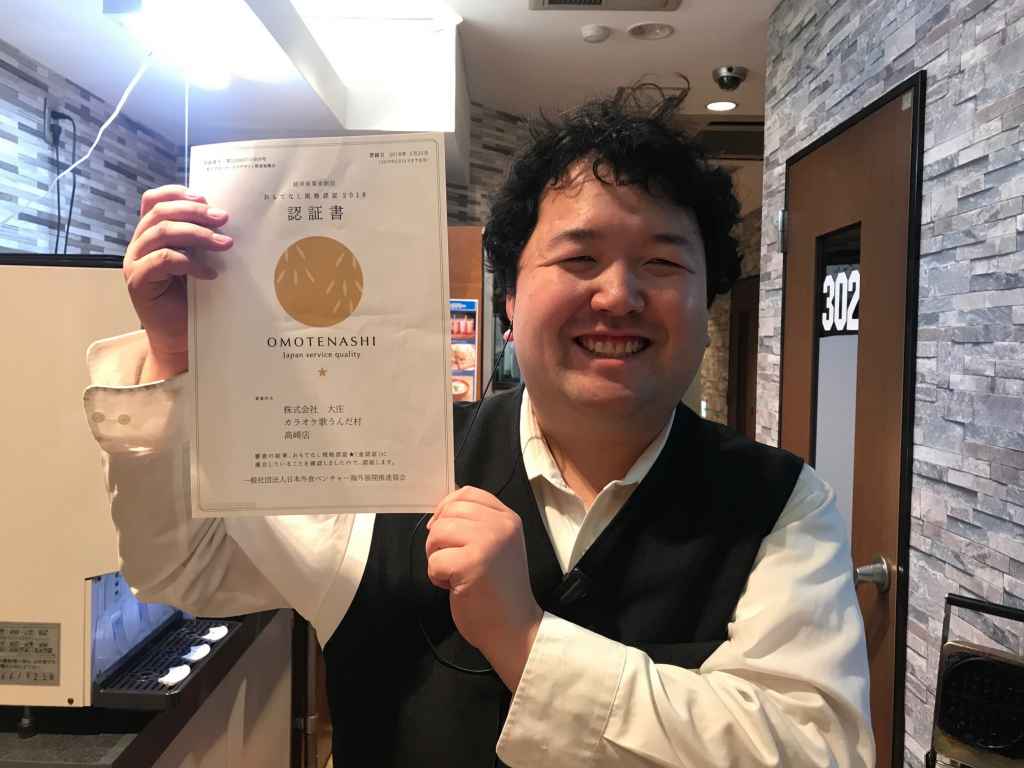 おもてなし規格認証(金)取得致しました!今後も、引き続きご来店いただいたお客様にご満足していただけるよう、スタッフ一同笑顔で対応して参ります。皆様のご来店心よりお待ちしております。