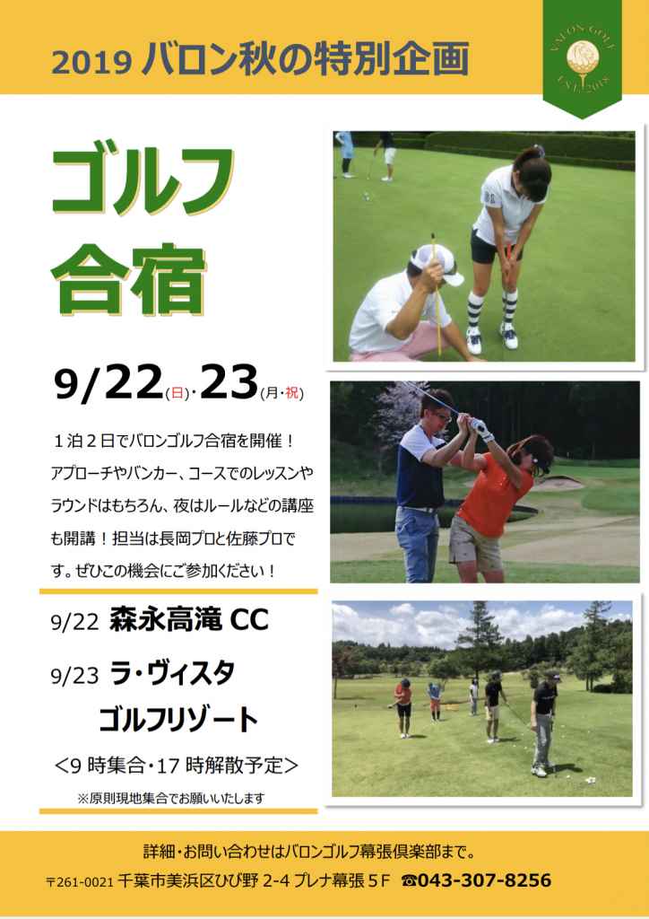 バロン合宿をついに開催!!一泊二日でみっちりレッスン&ラウンドが楽しめます!同行は人気の長岡プロと佐藤プロです!定員になり次第締め切りとさせていただきますのでぜひこの機会をお見逃しなく!こちらは会員様以外の方もご参加いただける企画です。詳細はバロンゴルフ幕張倶楽部までお気軽に♪Tel 043…もっと見る