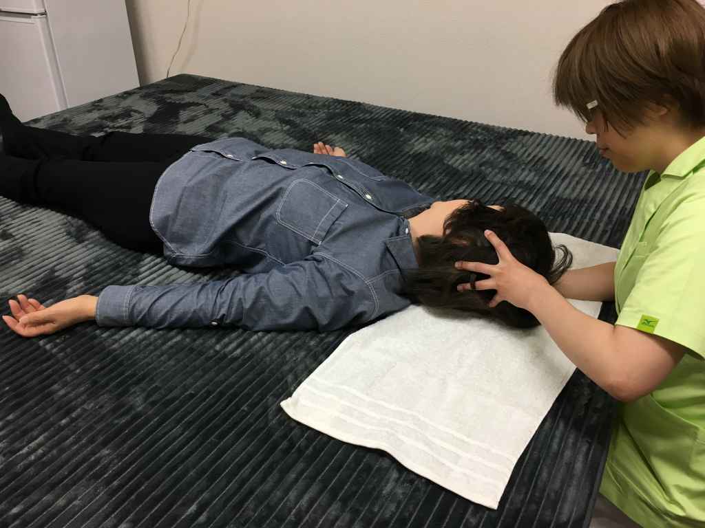施術風景。知良+巡り60分です。首はもちろんですが、必要とあらば、頭皮も。6