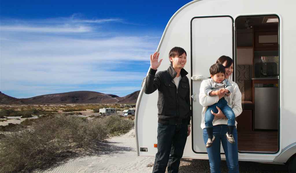 簡単にいうと、運転席のない牽引タイプのキャンピングカーを観光施設やレジャースポットに設置し、車内で宿泊ができるサービスです。