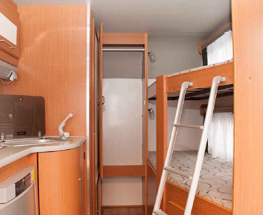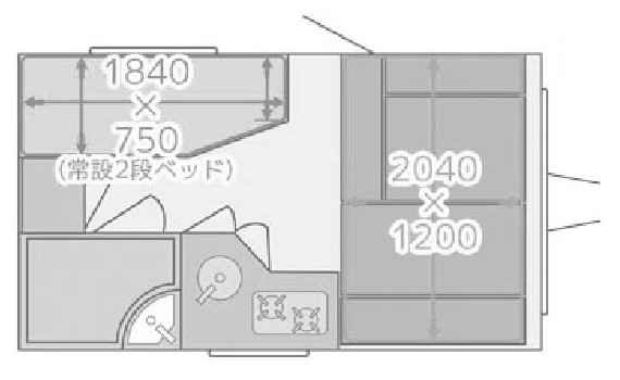 最大4名まで宿泊で標準でガスコンロ・エアコン・シンク・クーラーボックス・サブバッテリーを装備。