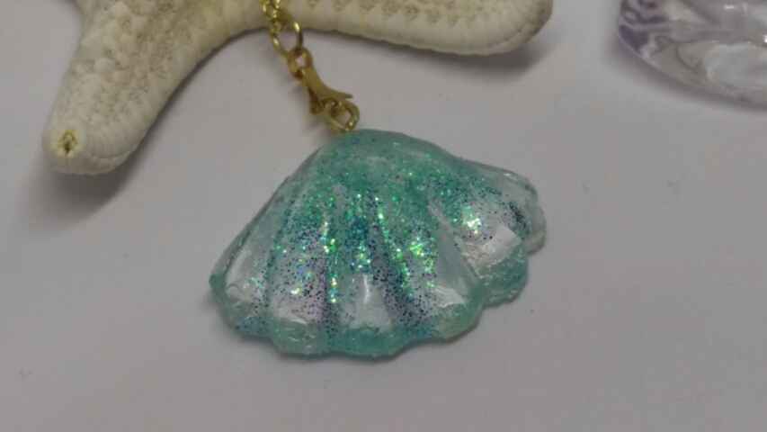 ぷっくりかわいいシェルのネックレス♥️きらきらラメが光加減で揺れます。