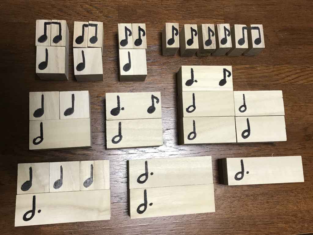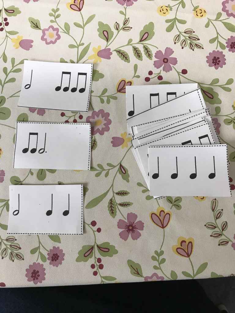 おんぷカード。ランダムに並べてリズムたたきをする。