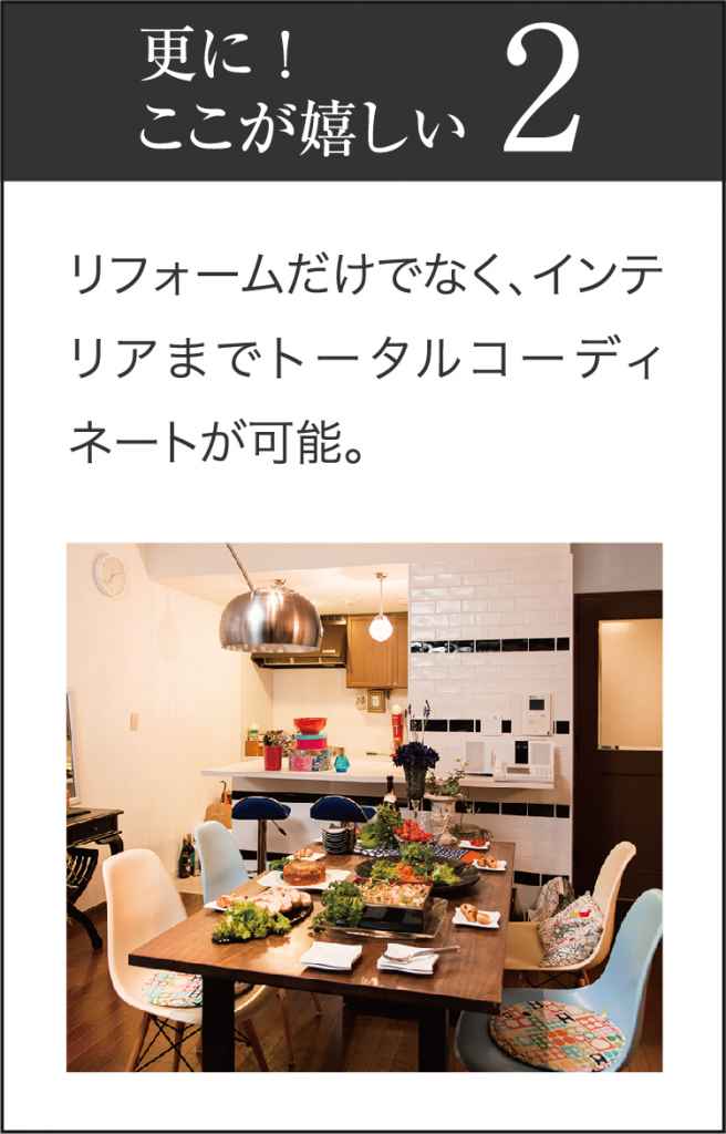 リフォームだけでなく、インテリアまでトータルコーディネートが可能。