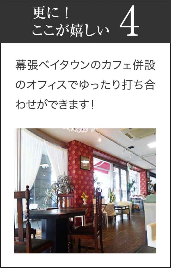 幕張ベイタウンにカフェ併設のオフィスでゆったり打ち合わせできます。