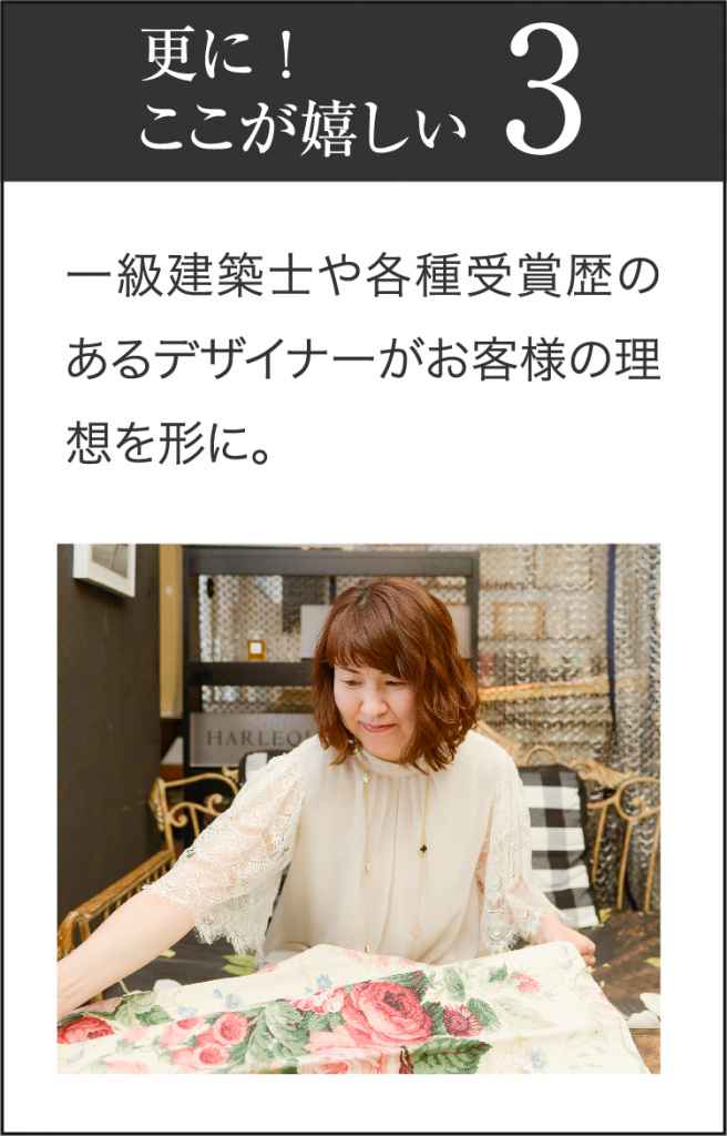 一級建築士や各種受賞歴のあるデザイナーがお客様の理想を形に。