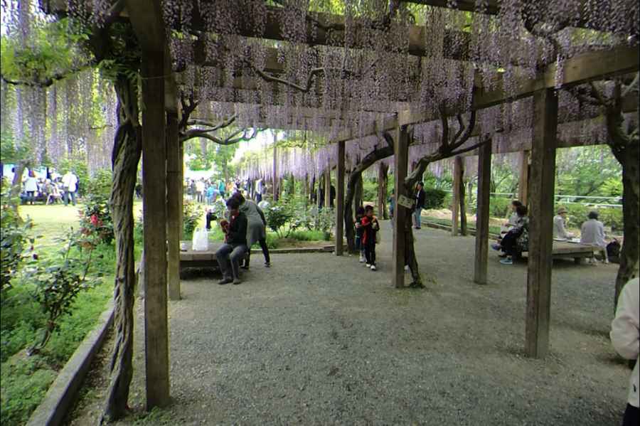2019年4月29日は年に一回の藤まつりが開かれ、延長日本一の300mの藤棚の周辺で野点茶会も行われます。