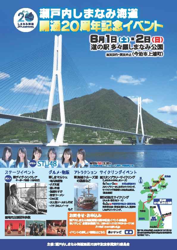 しまなみ海道大三島にて6/1(土)・6/2(日)に開通20周年記念イベントが開催されます。