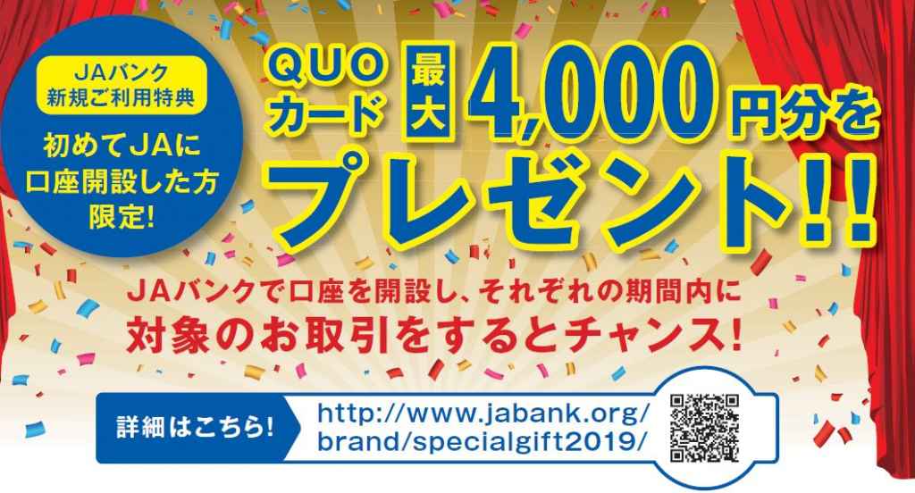 ▶ 【JAバンクご新規ご利用特典】 QUOカード最大4,000円分をプレゼント!!