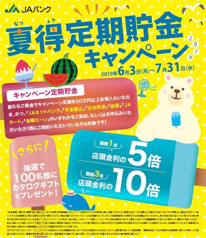 ●一部JAにおいて、お申込みいただけないお取引があります。※本特典は、2019年4月現在のものであり、予告なく本特典の内容を変更または終了する場合があります。