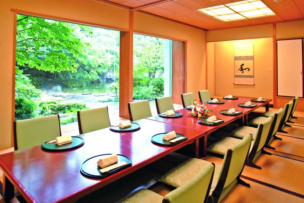 旬の味覚を活かした会席料理などを、数寄屋造りの店内でゆったりと愉しむ日本料理レストラン。