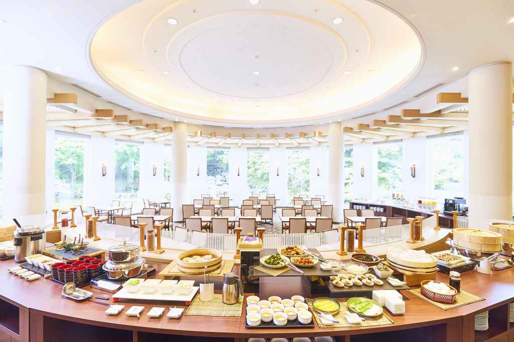 朝食は千産千消をテーマに、新鮮な地元野菜を使用したブッフェスタイル。ランチタイムは「選べるメインディッシュ」+「セミブッフェ料理」スタイル。厳選素材を使用したメインディッシュ(月替わり)に、新鮮な地元野菜のサラダバー、ミニデザートなどが楽しめるホテルブッフェ。