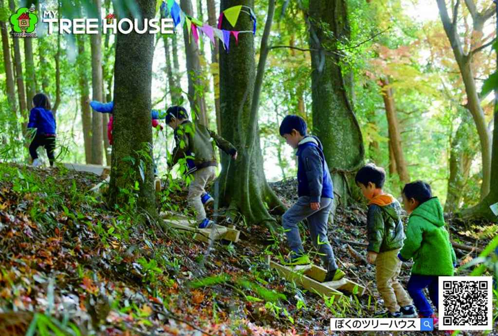 ツリーハウスに登ったり、遊具であそんだりと様々な体験が可能です。