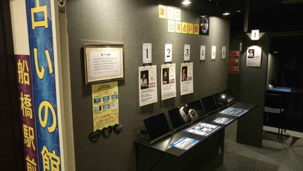 【内観】 本日出演の占い師コーナー。タブレットより「次の順番」をとることができる。